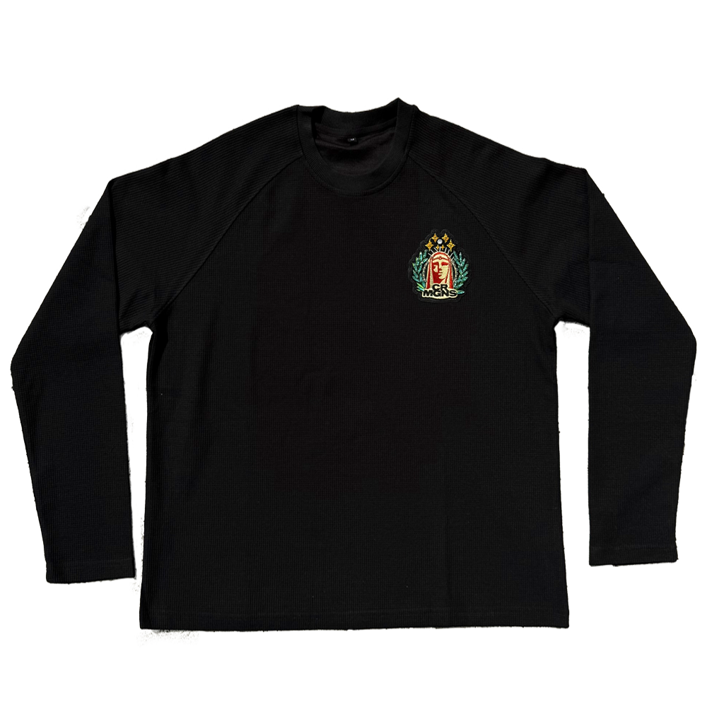 The Crest Waffle long sleeve shirt features a refined waffle knit texture that offers both warmth and breathability. Crafted in classic black, this shirt provides a versatile layering option with a tailored fit that ensures comfort and style. Ideal for cooler days, its textured fabric enhances insulation while maintaining a lightweight feel, making it a smart choice for everyday wear or casual professional settings.